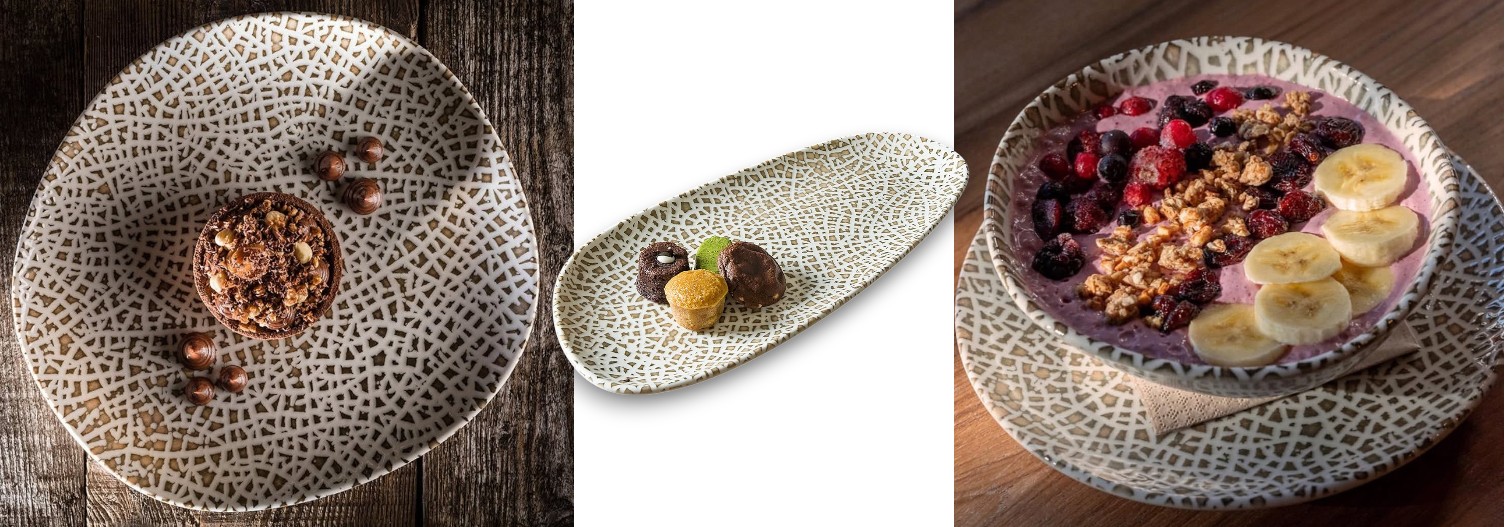 Lapya Wood är en karaktärsstark porslinsserie som kombinerar naturlig estetik med professionell prestanda. Den träinspirerade dekoren ger ett varmt, organiskt uttryck som skapar kontrast och djup i presentationen, samtidigt som varje tallrik fungerar som en neutral men levande bas för maten. Serien är utformad för att lyfta både dessert, förrätter, sharing-rätter och à la carte-servering.
