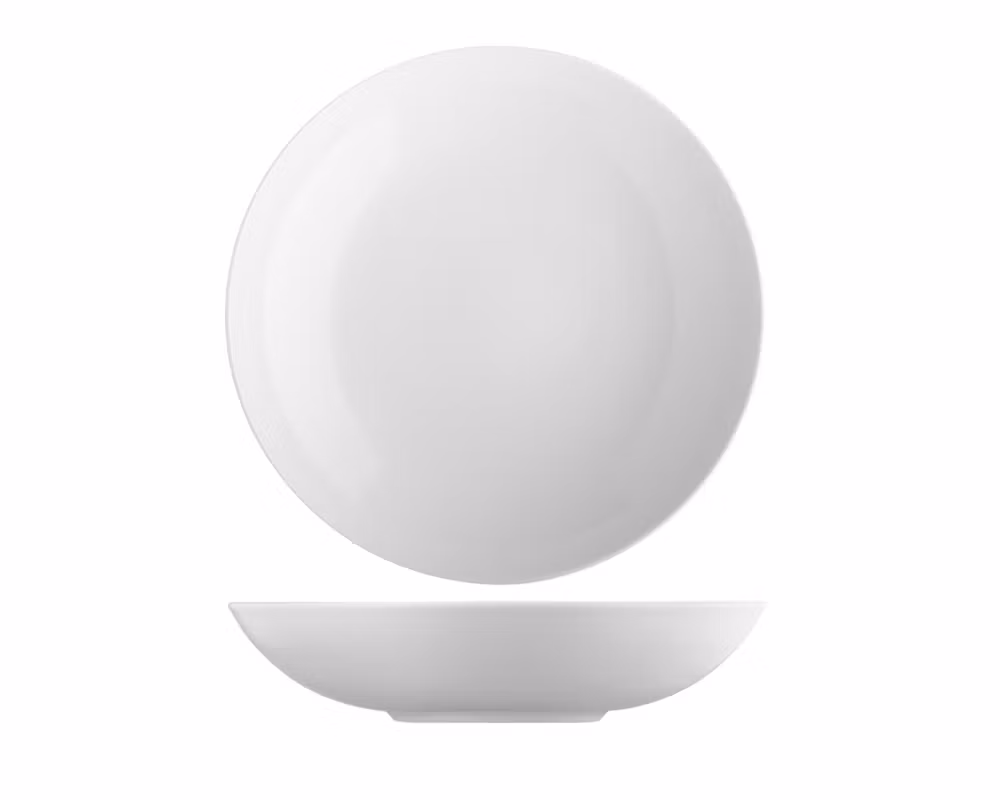 Den släta coupe-designen utan bräm ger en generös serveringsyta och framhäver maten på ett exklusivt sätt. Tallriken är idealisk för huvudrätter, pasta, sallader och kreativa gourmetuppläggningar. Den är utvecklad för intensiv daglig användning i professionella miljöer och erbjuder en perfekt balans mellan estetik och funktion.