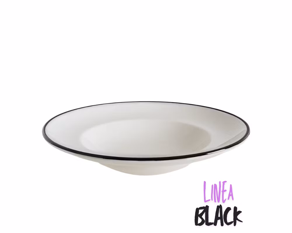 Denna djupa tallrik i serien Linea Black kombinerar modern design, slitstarkt porslin och extra generös kapacitet, vilket gör den perfekt för restaurang, café och hotell. Den eleganta svarta finishen skapar en exklusiv kontrast som framhäver rätter och ger varje servering ett stilrent och professionellt uttryck.