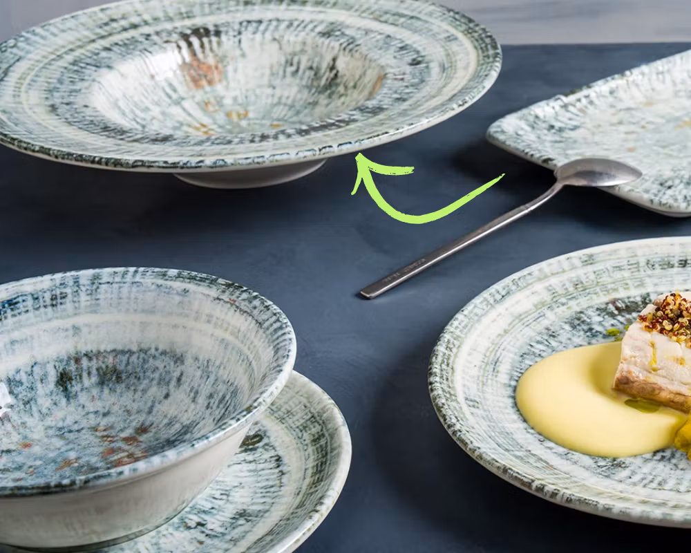 Den djupa formen gör tallriken idealisk för pasta, risotto, soppor, sallader och andra gourmeträtter. Den generösa storleken ger gott om utrymme för kreativa uppläggningar och bidrar till en exklusiv matupplevelse.