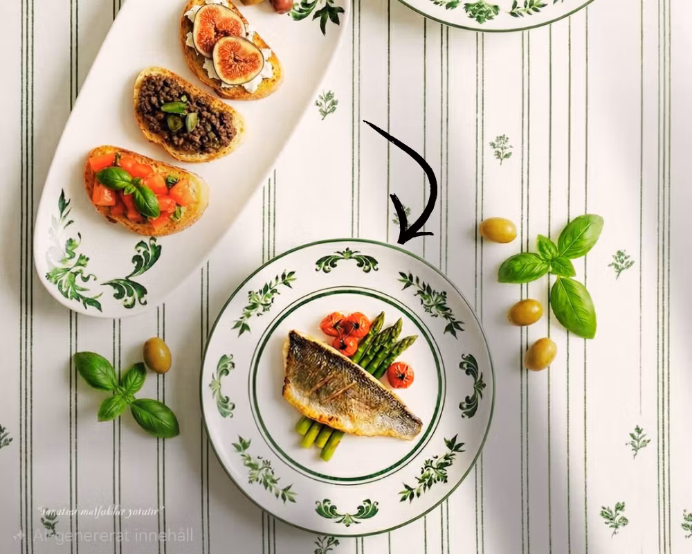 • Medelhavsinspirerad färg – skapar en varm och levande dukning