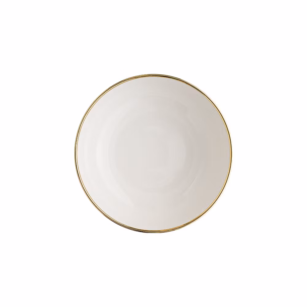 Den generösa volymen gör skålen idealisk för sallader, pasta, bowls, serveringsrätter och gourmetuppläggningar. Den harmoniska kombinationen av krämfärgat porslin och gulddetaljer lyfter presentationen och ger ett exklusivt helhetsintryck.