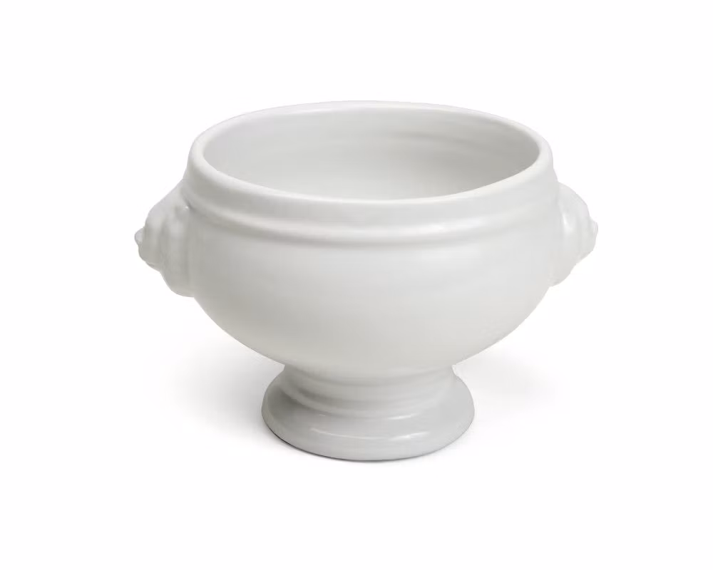 Denna klassiska soppskål är försedd med vackra handtag utformade som lejon på sidorna, vilket ger den en tidlös och elegant design.