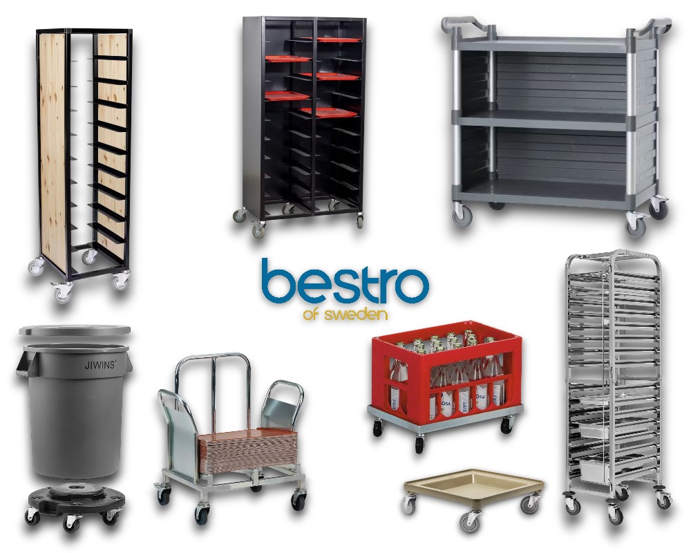 • Transportvagnar – för flytt av kärl, tallrikar, brickor eller kantiner.