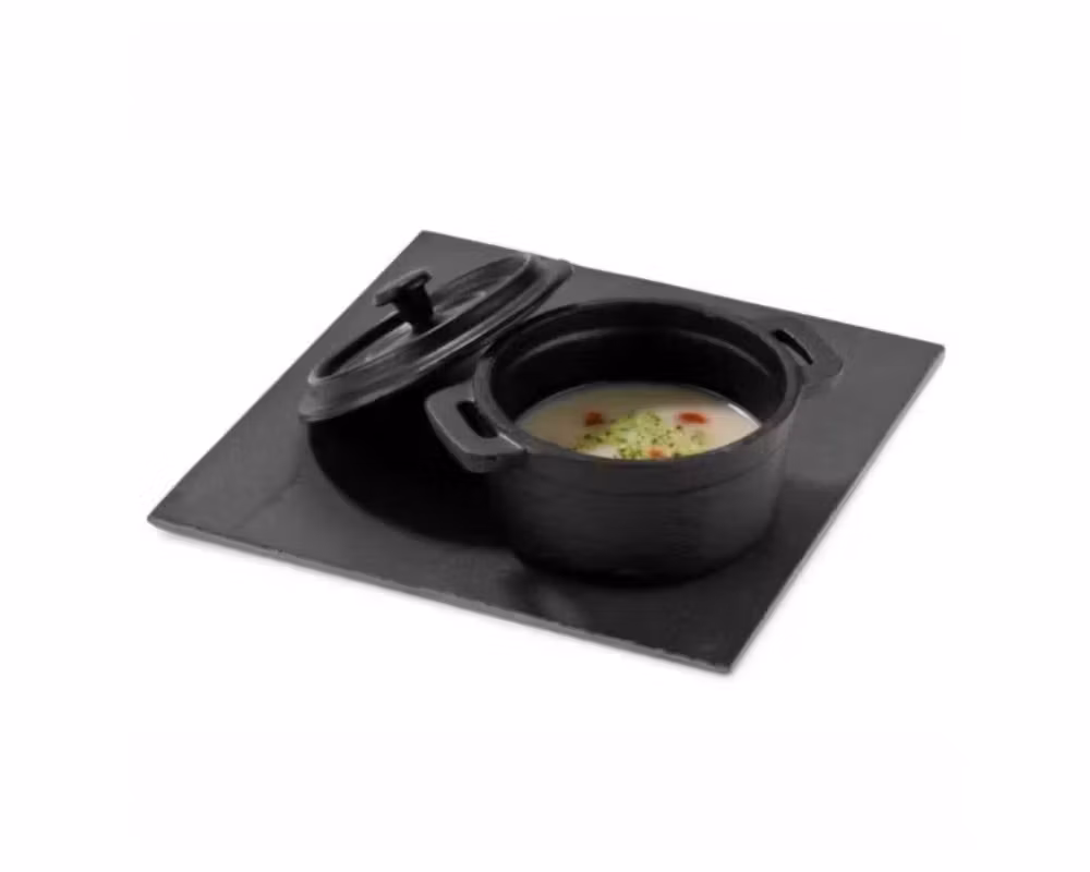 Minigrytan från FRANKHUGO är tillverkad i klassiskt svart gjutjärn och rymmer 20 cl – idealisk för att servera såser, varma tillbehör, minigrytor eller desserter med värmehållande effekt. Den kompakta diametern på 100 mm gör den till ett stilfullt inslag vid bufféer och à la carte-servering där varje detalj räknas.