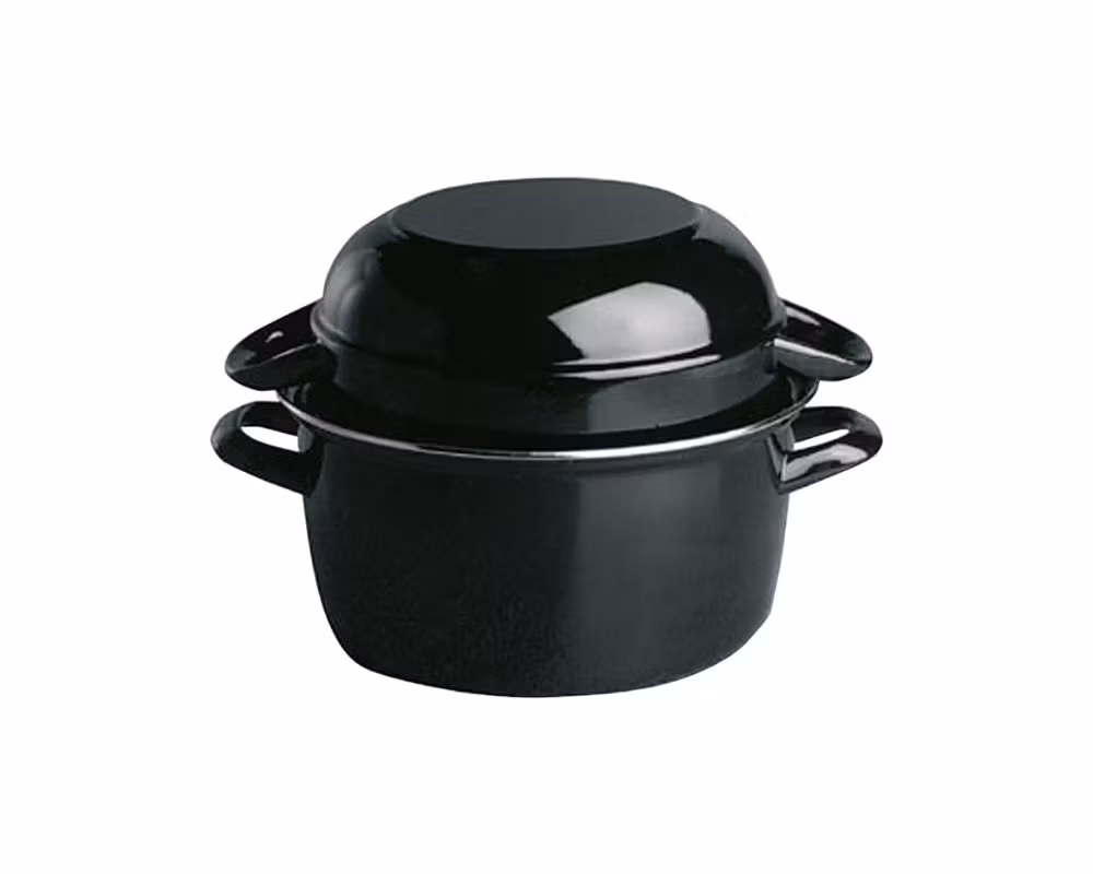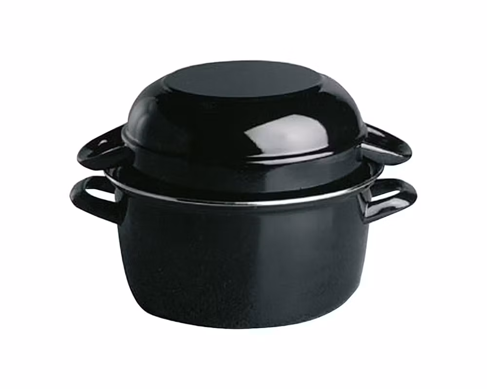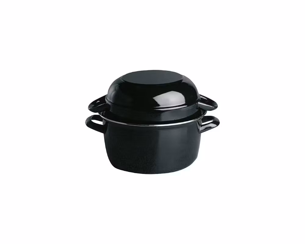Servera musslor på klassiskt vis med denna svarta musselgryta med lock och handtag från tyska APS, tillverkad i slitstarkt emaljerat stål med rostfri kant för extra hållbarhet och stil. Grytan är avsedd för servering, inte tillagning, och blir ett perfekt inslag vid både restaurangservering och buffé.
