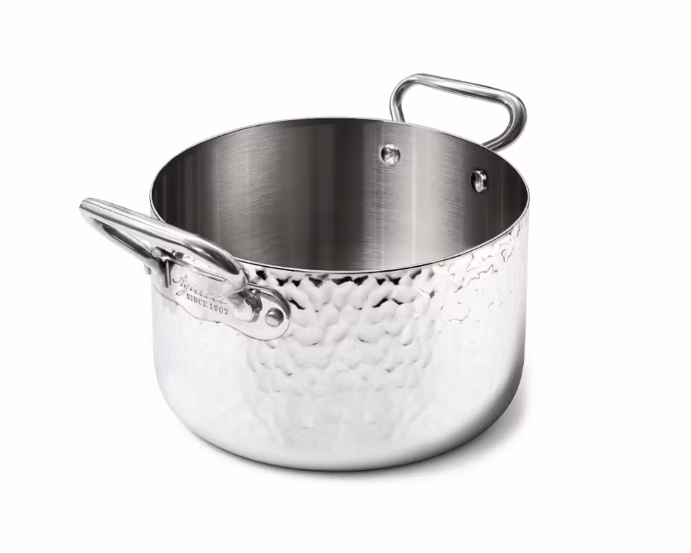 Denna kittel från Agnelli kombinerar hamrad design, 3-ply konstruktion och hög värmeledning, vilket gör den idealisk för restaurang, storkök och avancerad hemmamatlagning. Den hamrade ytan ger inte bara ett exklusivt utseende utan bidrar även till en robust och tålig konstruktion.