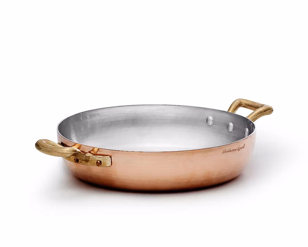 Agnelli Kopparpanna 28 cm med 2 Handtag är ett professionellt och stilfullt köksredskap som passar både hemmakockar och professionella kockar. Ett pålitligt verktyg för matlagning och servering med italiensk kvalitet och design.