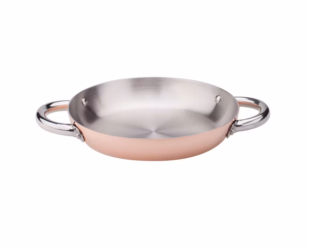 Denna eleganta kopparpanna från Agnelli kombinerar klassisk italiensk design med modern funktionalitet. Med sin diameter på 24 cm och två robusta handtag är den perfekt för både matlagning och servering. Den avancerade 4-ply-konstruktionen med induktionskompatibel botten säkerställer snabb och jämn värmefördelning, vilket gör den idealisk för rätter som kräver precision.