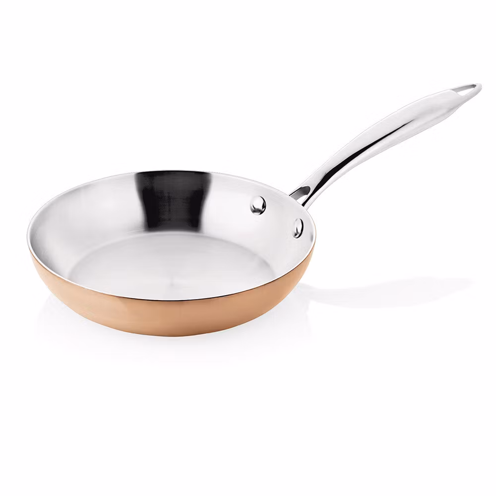Denna 3-skikts stekpanna med en diameter på 20 cm är det perfekta valet för mindre tillagningar där precision och jämn värmefördelning är avgörande. Tillverkad med en kombination av koppar, aluminium och rostfritt stål, erbjuder den snabb uppvärmning, effektiv värmefördelning och en hygienisk insida. Den eleganta kopparfinishen gör den till ett stilfullt och funktionellt inslag i köket.
